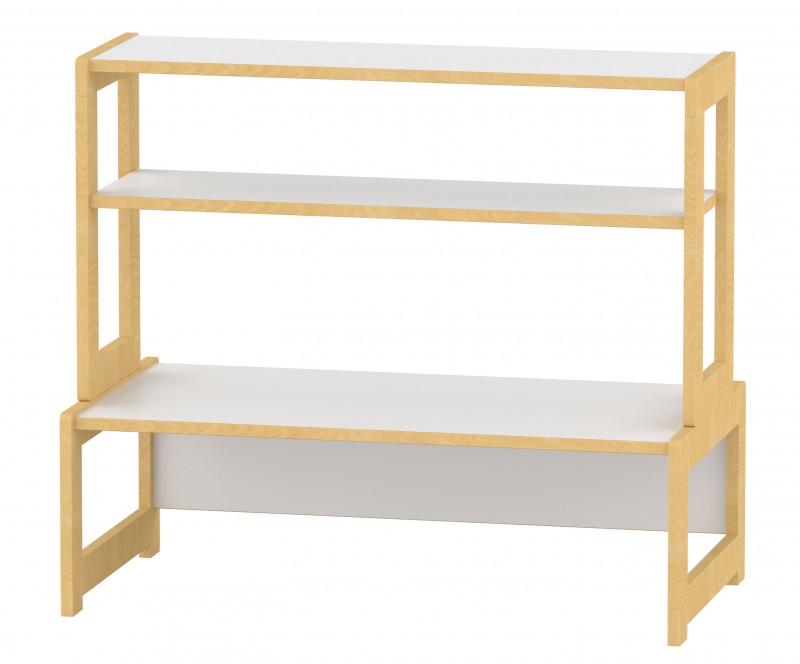 Az alsó, szélesebb elem magassága 30 cm, erre lehet két állásban ráilleszteni a felső, keskenyebb polcos részt. Az oldalakon a tömörbükkfa lezáró keret teszi masszívvá és biztonságossá a bútort. A termék mérete: Szélesség: 90 cm, alsó elem mélysége 50 cm, felső elem mélysége 30 cm, magassága 80 cm keményfa élzárással, tömör bükkfa kerettel az oldalakon. Lakkozott és külső csavarozás mentes kivitel. készreszerelt termék.