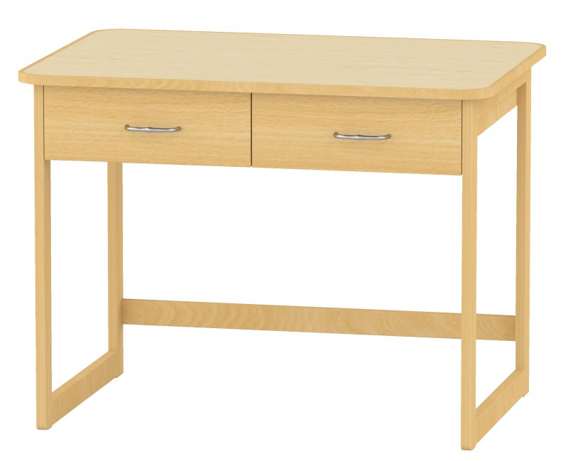 Mérete: 92x65x70 cm - 2 fiókos, anyaga: juhar laminált bútorlap - keményfa élzárással, tömör bükkfa lábbal. Az asztal stílusa megegyzik a gyermek asztallal és ülőkével. Tömörfa lábai nyitott keretet alkotnak oldalról és hátulról is, így a kisgyermeknevelők kényelmesebben tudják használni és szellősebbé teszi a csoportszobát.