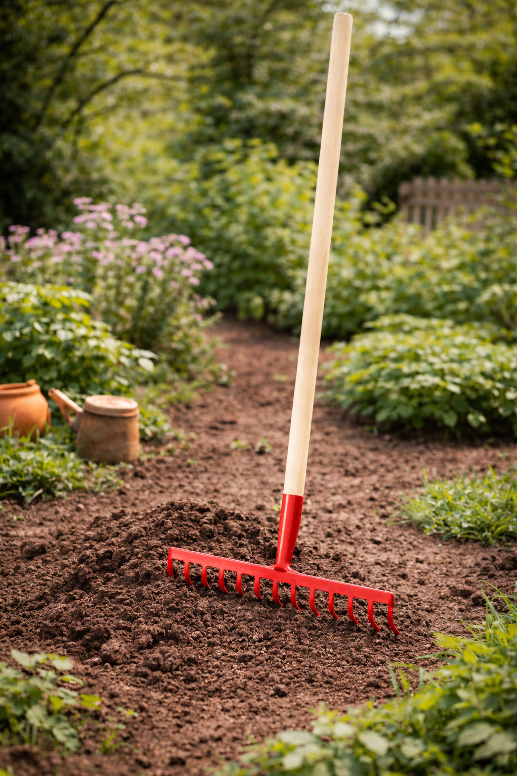 Ez a felnőtt munkavégzéshez készült gereblye ideális kerti munkákhoz, például talajegyengetéshez, lomb- és nyesedékgyűjtéshez, valamint ágyások rendezéséhez.