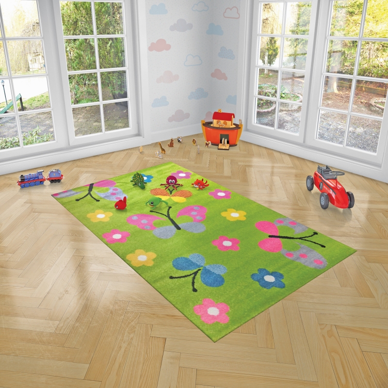 Bájos, aranyos, pillangós szőnyeg. Tökéletes választás bölcsődéknek, óvodáknak vagy akár otthonra, gyermeke szobájába, melyet vidámmá és játékossá tehet.