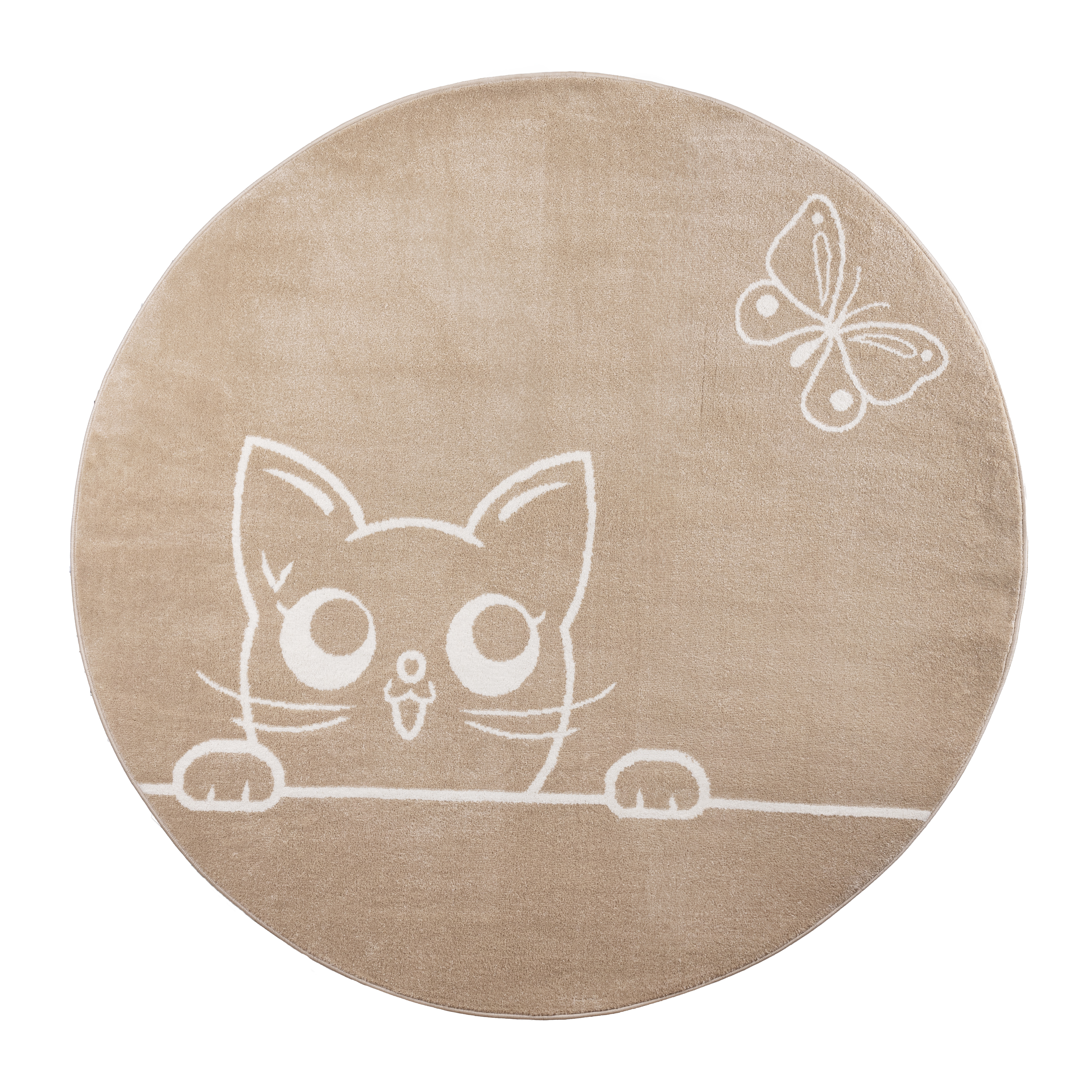 A szőnyeg alapja bézs, a minta fehér kontúros.