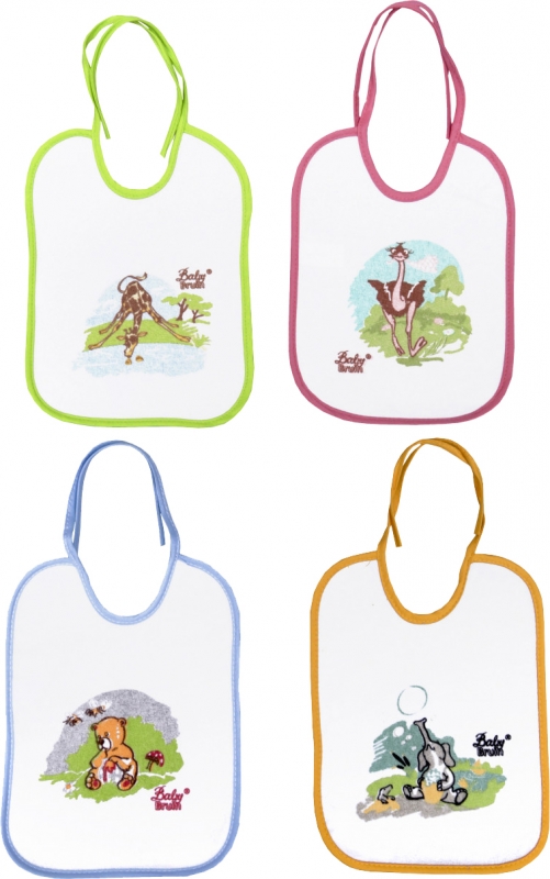 A vidám mintázatú gyermek előke praktikus segítség az étkezések során.