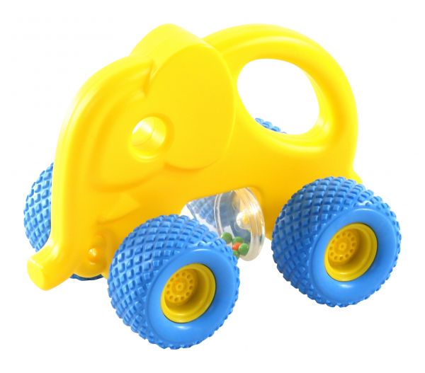 Mind az autó, mind a kerekek strapabíró, de puha anyagból készültek. Káros anyagok felhasználása nélkül készült. A vidám elefánt mintájú kocsival a legkisebbek is tudnak játszani, mert a tetején található fogantyút még a legkisebb kezek is könnyedén meg tudják fogni. Nem jól gurul, de a belsejében, az átlátszó hengerben található csörgők még vidámabbá teszik ezt az igen egyszerű játékot. A termék mérete: 18x12x14cm 1 éves korú gyermekek használatára CE minősítéssel ellátva!