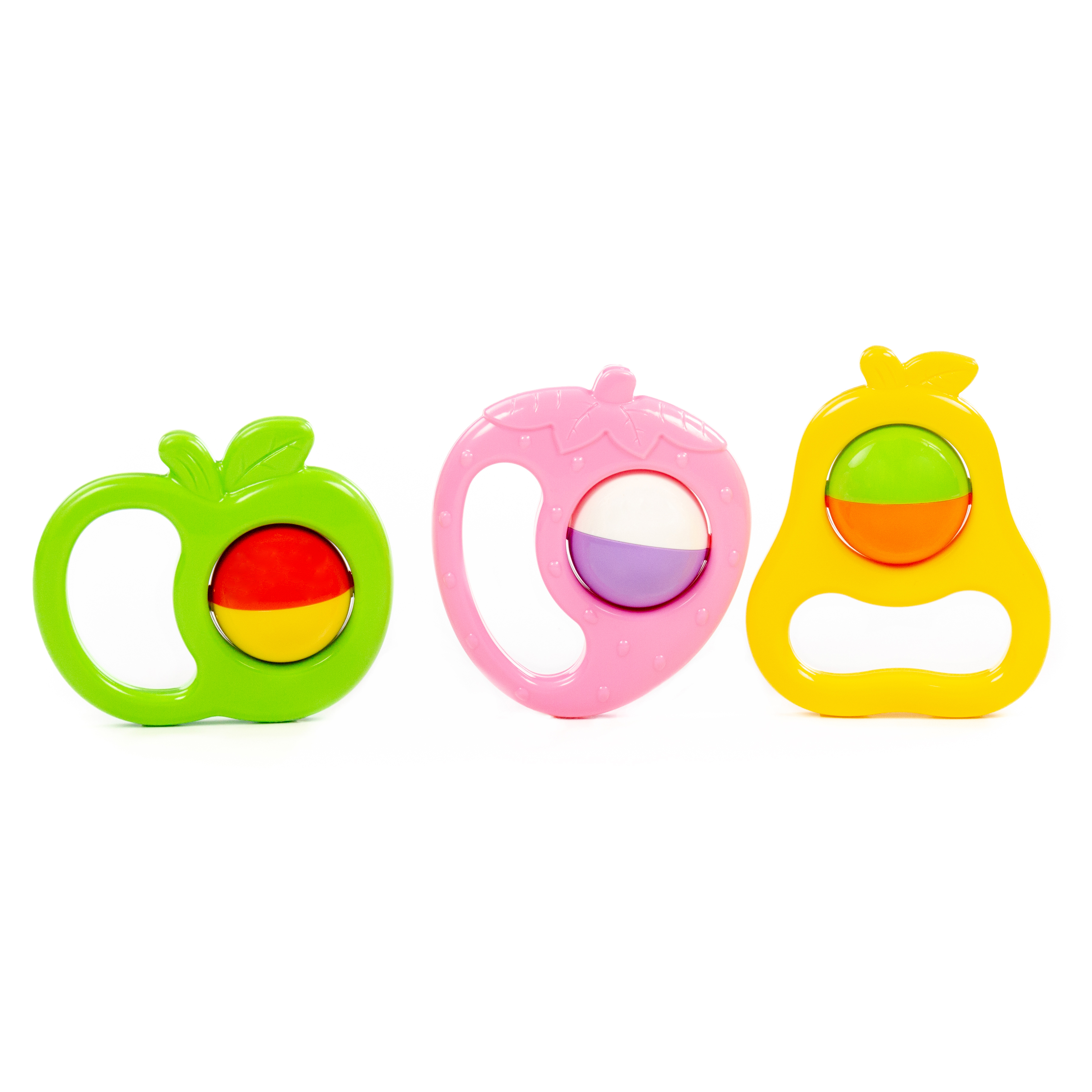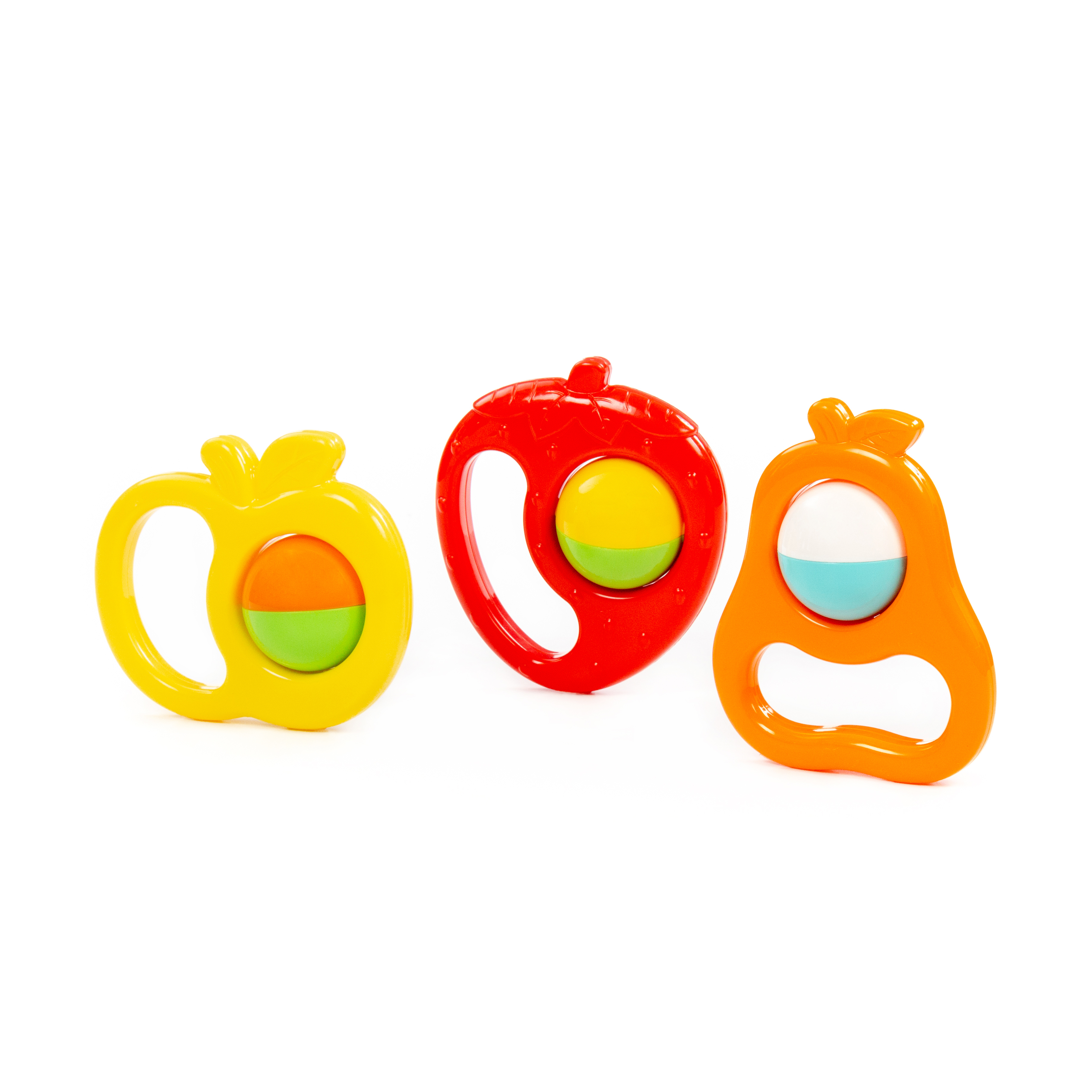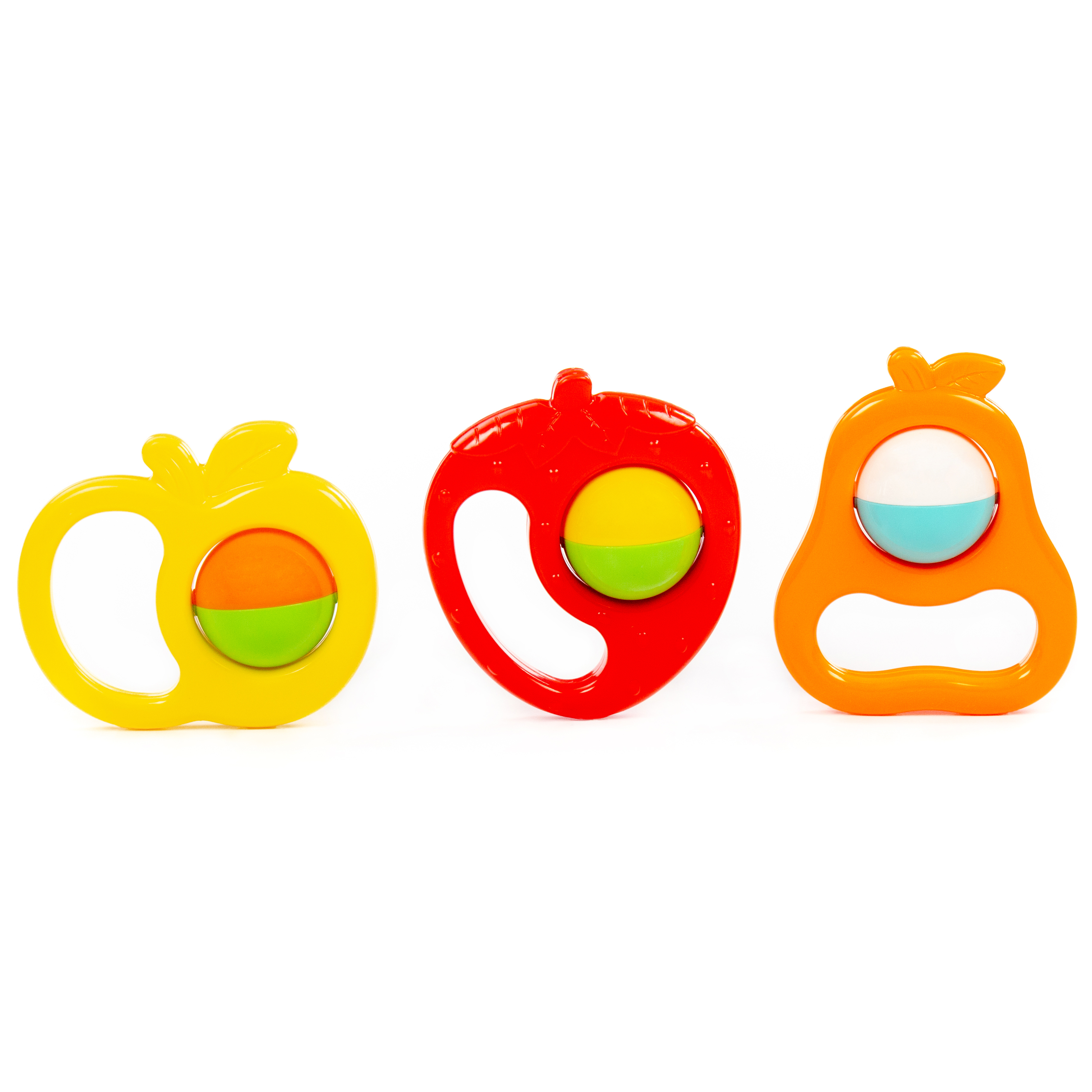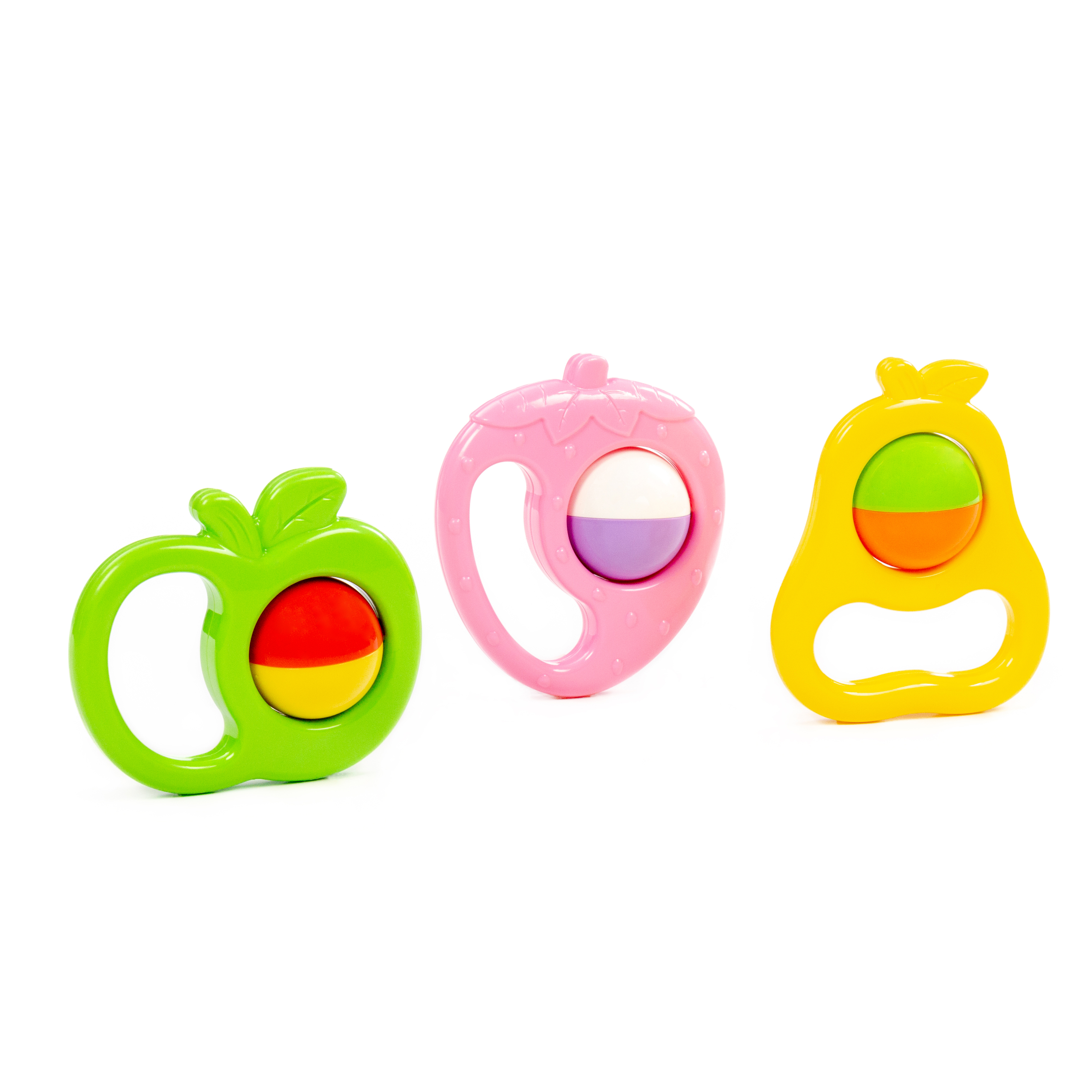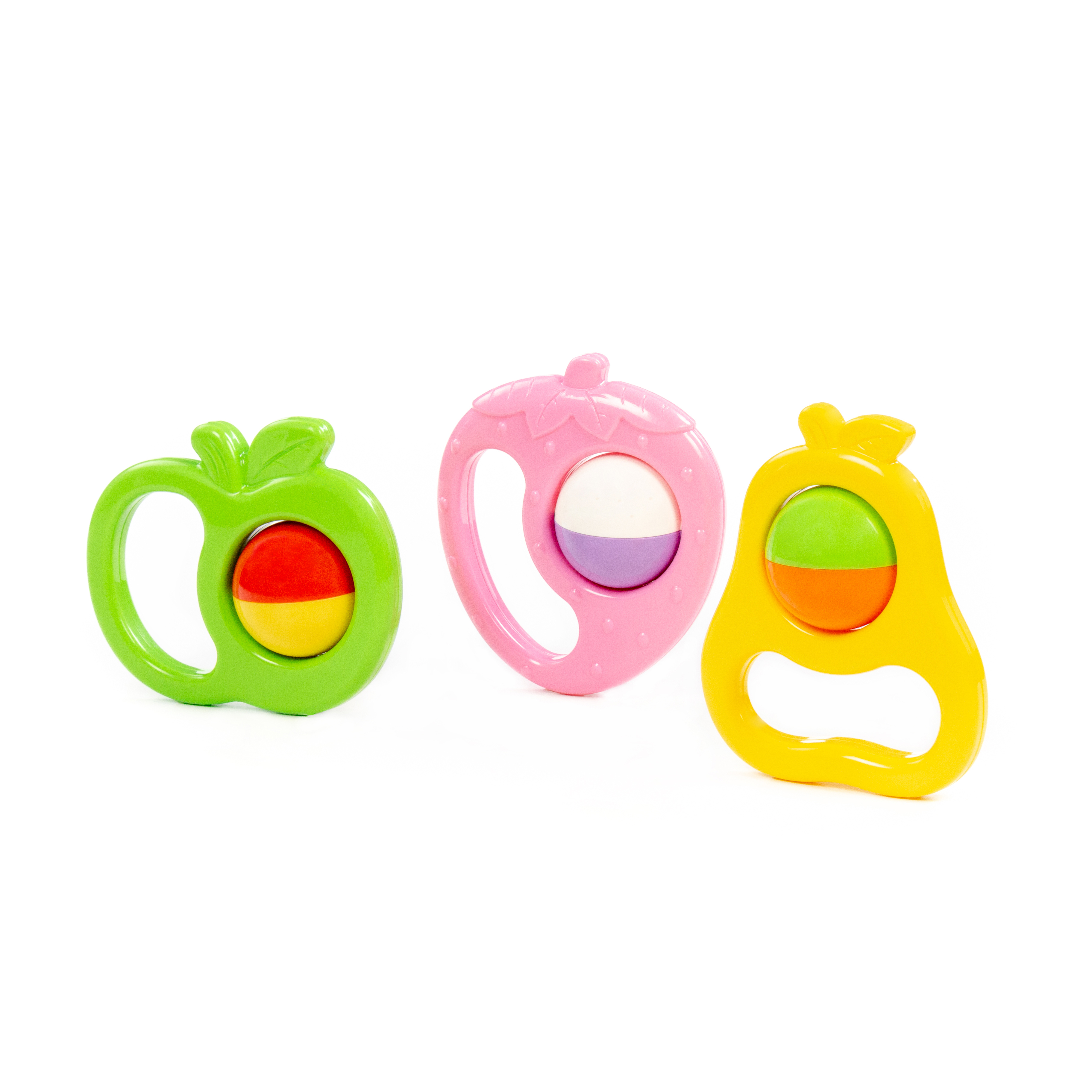 Ezzel a csörgőkészlettel a babák játék közben felfedezhetik a színeket és hangokat, miközben vidáman mozgatják és rázzák kedvenc kis gyümölcseiket.
