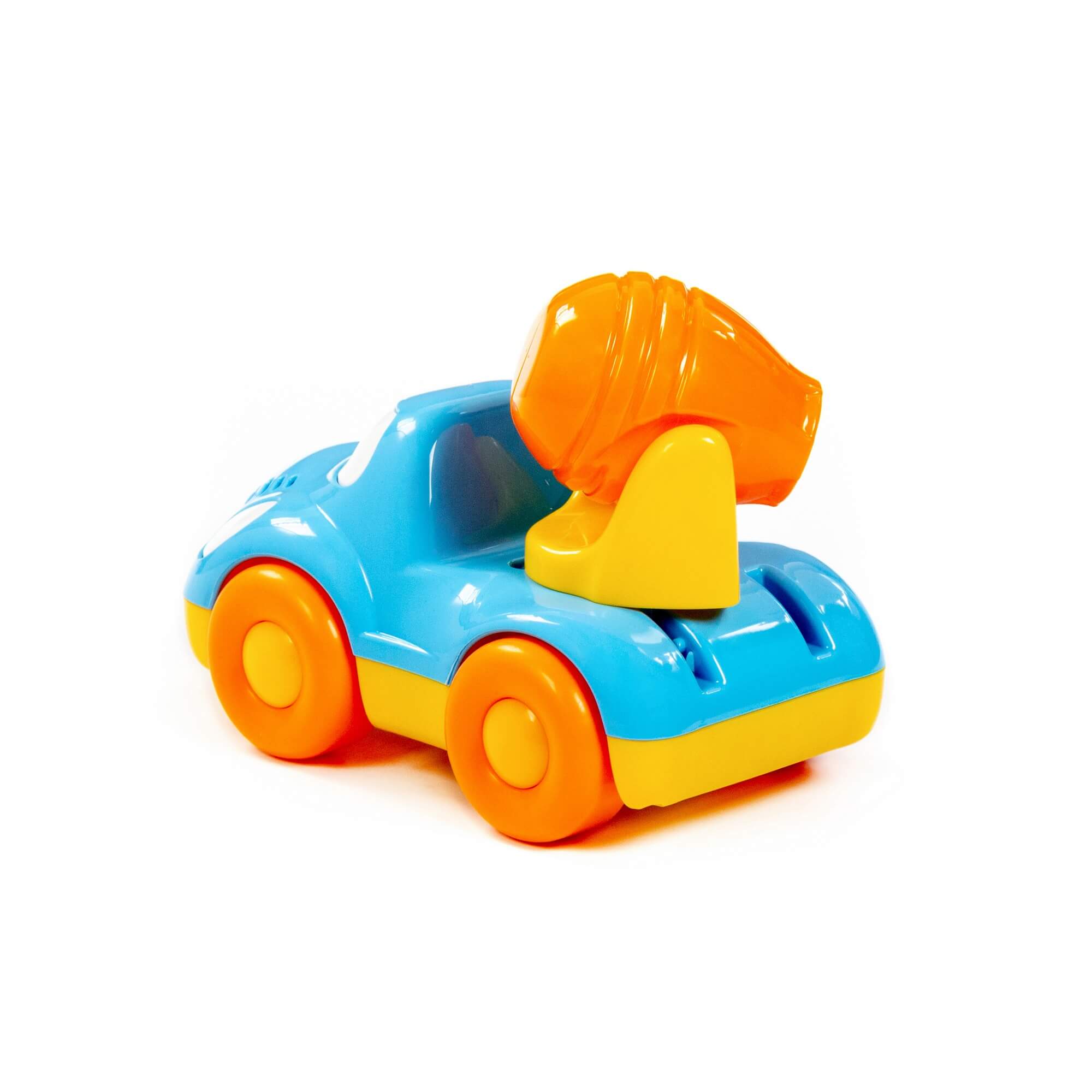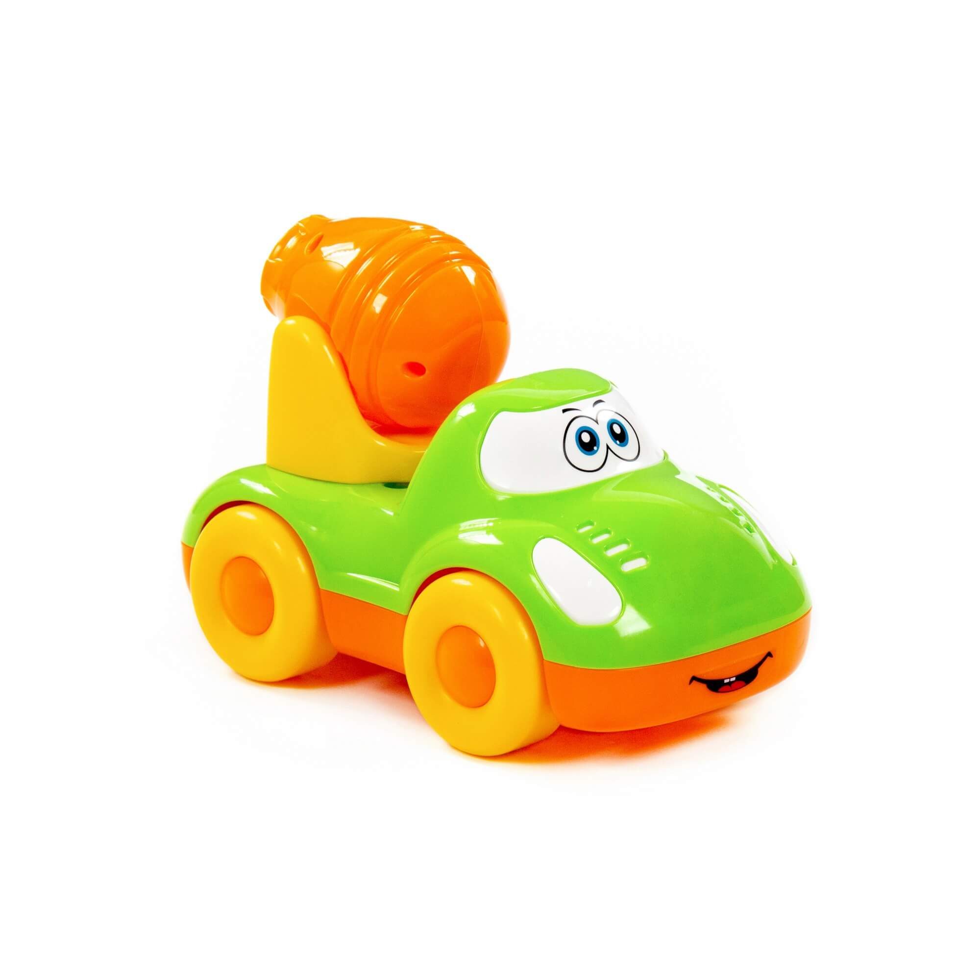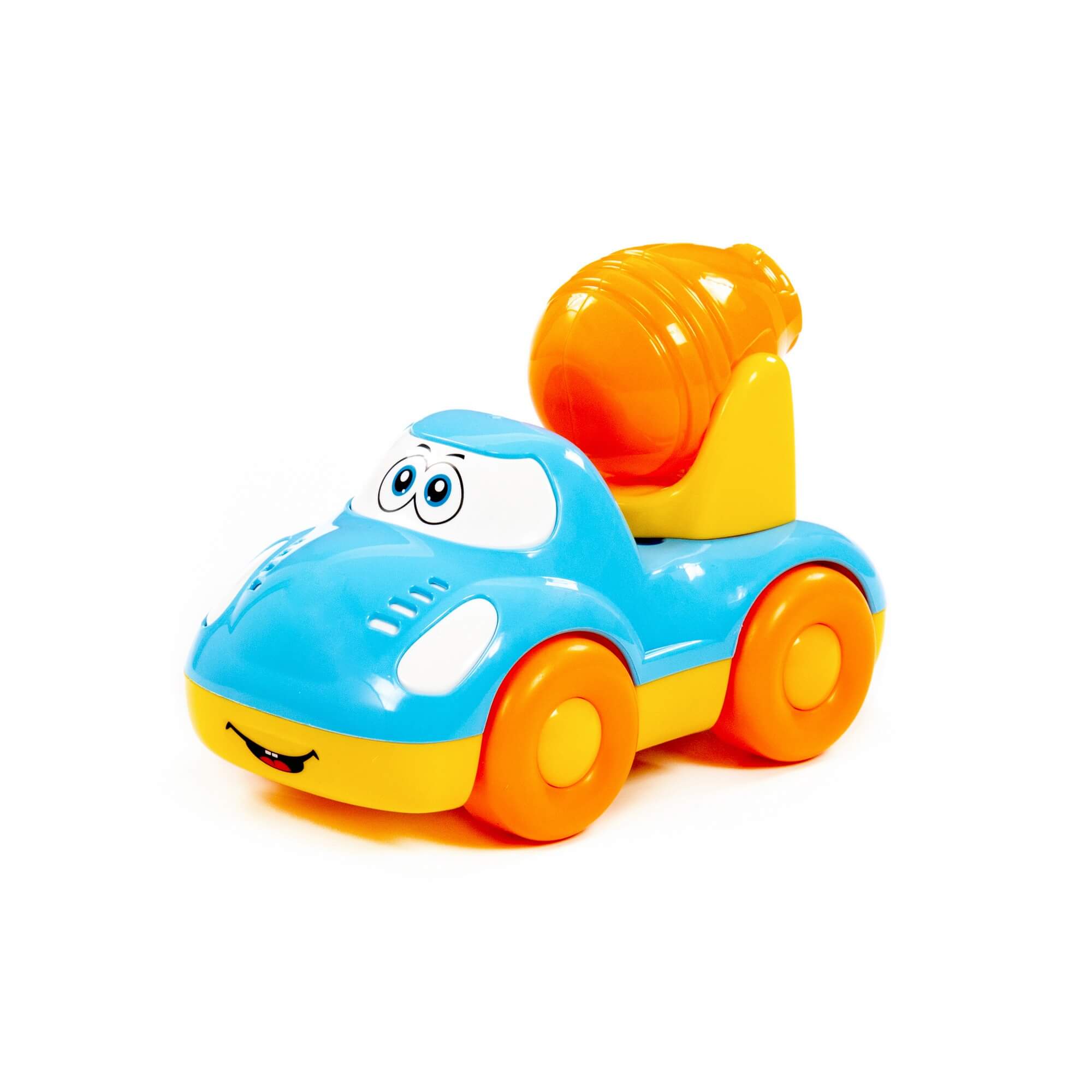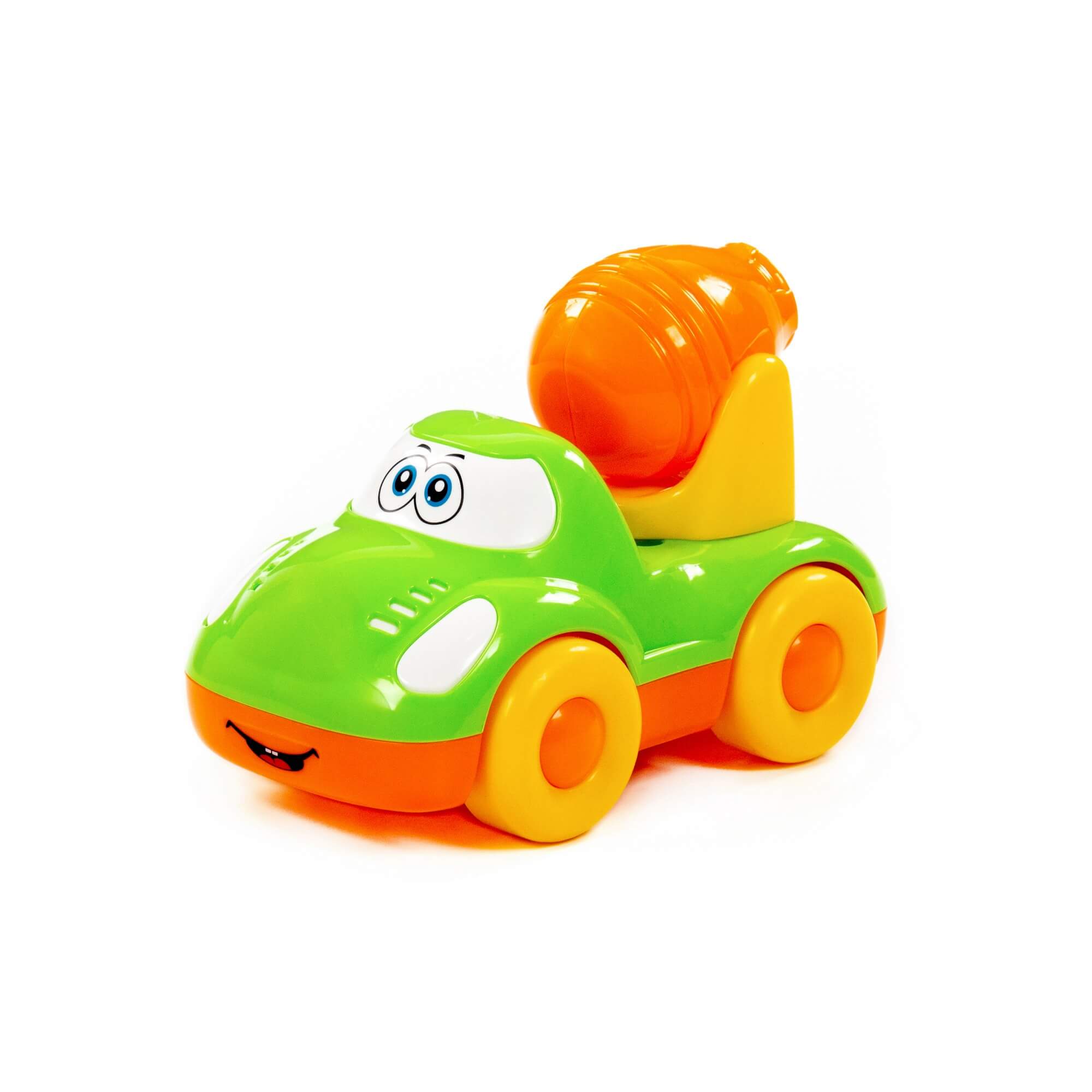 Ez a mosolygós betonkeverő teherautó egy vidám, élénk színű játékjármű, amelyet a legkisebb gyermekek számára terveztek.