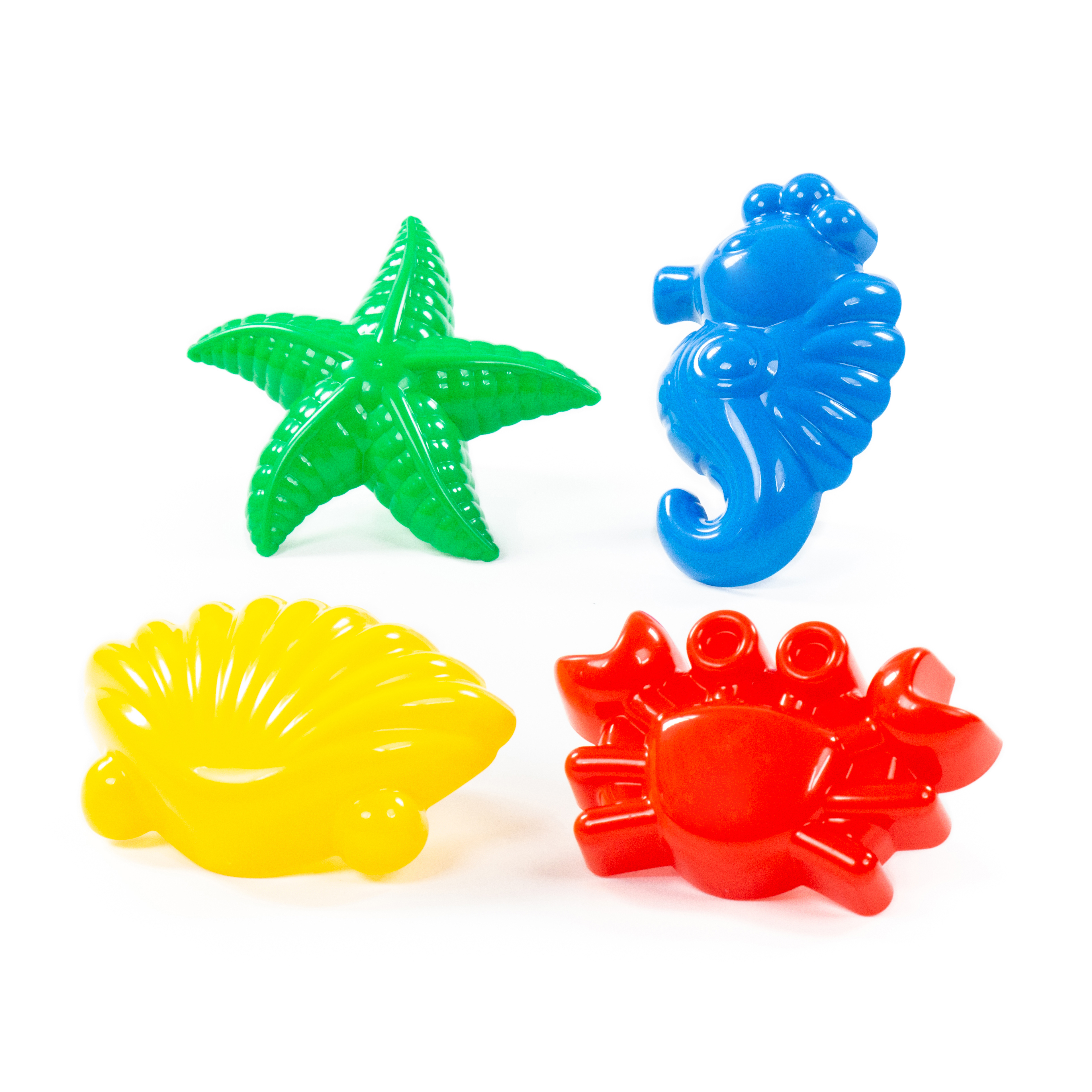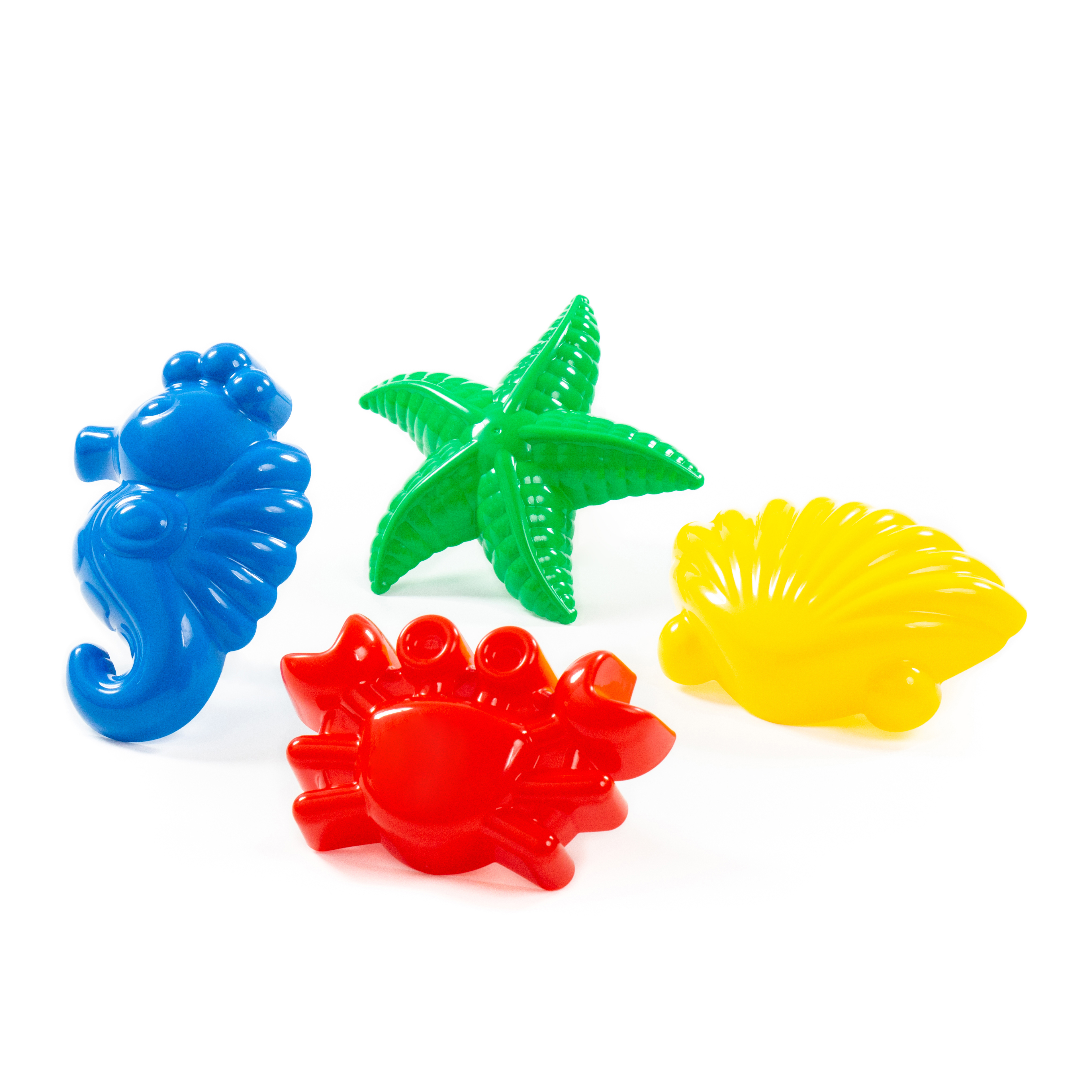 Ez a homokozóforma készlet tengeri hangulatot varázsol a homokozóba vagy a strandra. A csomagban található négy különböző tengeri motívum – kagyló, rák, tengeri csillag, csikóhal– segítségével a gyerekek izgalmas lenyomatokat készíthetnek. A formák könnyen megfoghatók, ezért már a kisebbek is önállóan tudják őket használni. Strapabíró, BPA-mentes műanyagból készültek, élénk színeikkel pedig nemcsak látványosak, hanem könnyen megtalálhatók a homokban is. Csomagolás mérete: 15x13x10 cm 12 hónapos korú gyermekek használatára CE minősítéssel ellátva!