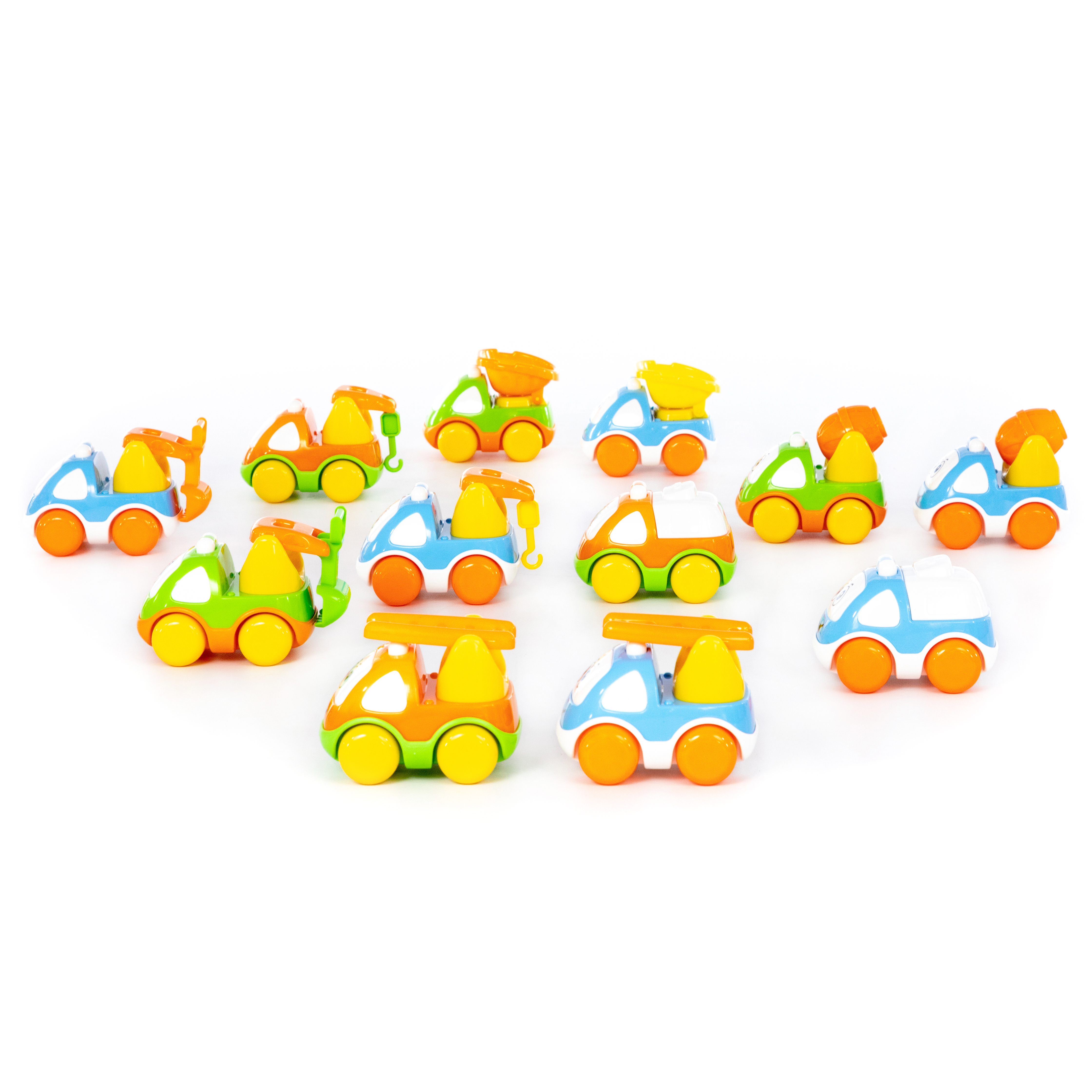 A készlet 20 darab egyszerű, könnyen gurítható kisautót tartalmaz, amelyeket már a legkisebbek is biztonsággal használhatnak, miközben játék közben fejlesztik készségeiket, képességeiket.