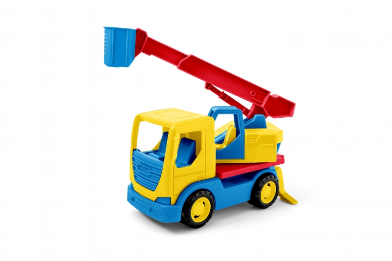 Típus: játék darus autó (kosaras) Méret: 29 cm Ajánlott kor: 24 hónapos kortól Anyag: tartós műanyag Kialakítás: mozgatható kosár és darukar, lekerekített élek Tanúsítvány: CE minősítés Színek: változó (a képtől eltérhet)