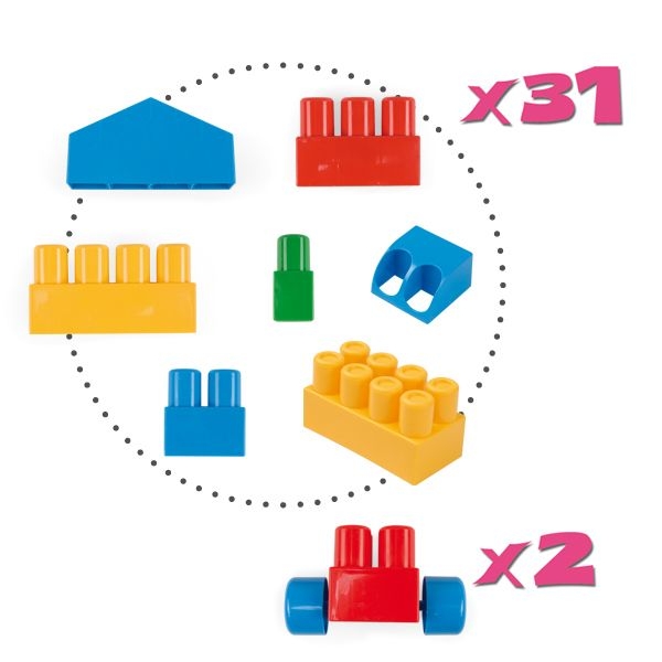 A termék színei esetenként eltérhetnek a képen láthatótól. Tartalma: 33 db építőkocka 6x7 cm-es elemek 30 cm-es dobozban 12 hónapos korú gyermekek használatára CE minősítéssel ellátva!