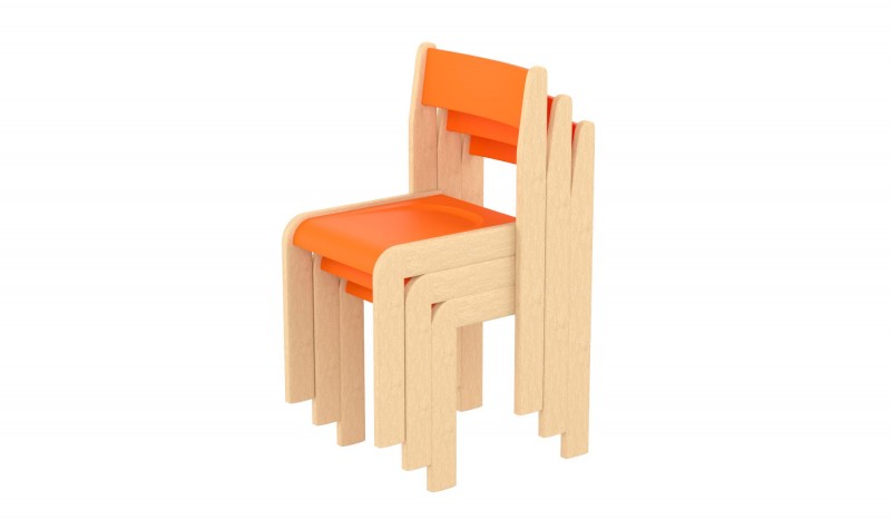 Mélyített ülése és íves háttámlája biztosítja a gyermekek helyes testtartását, egészséges fejlődését. Az ülés és háttámla rétegelt lemezből, a szék szerkezete bükkfából készül, vízbázisú környezet és gyermekbarát lakkal kezelve.