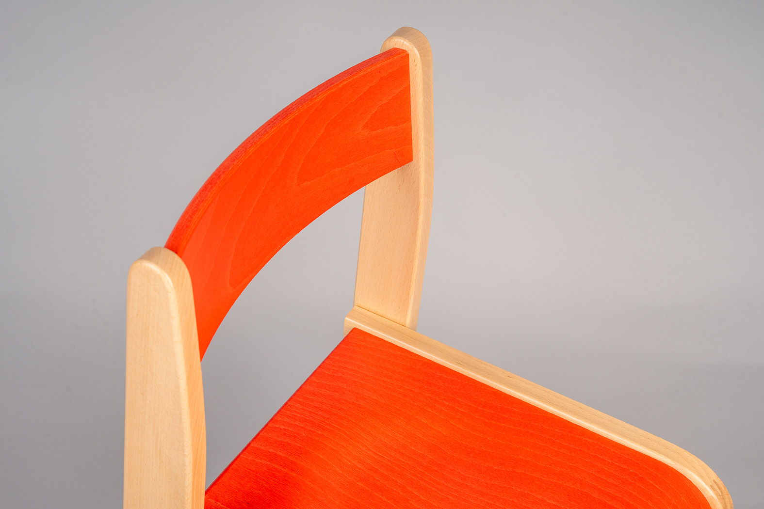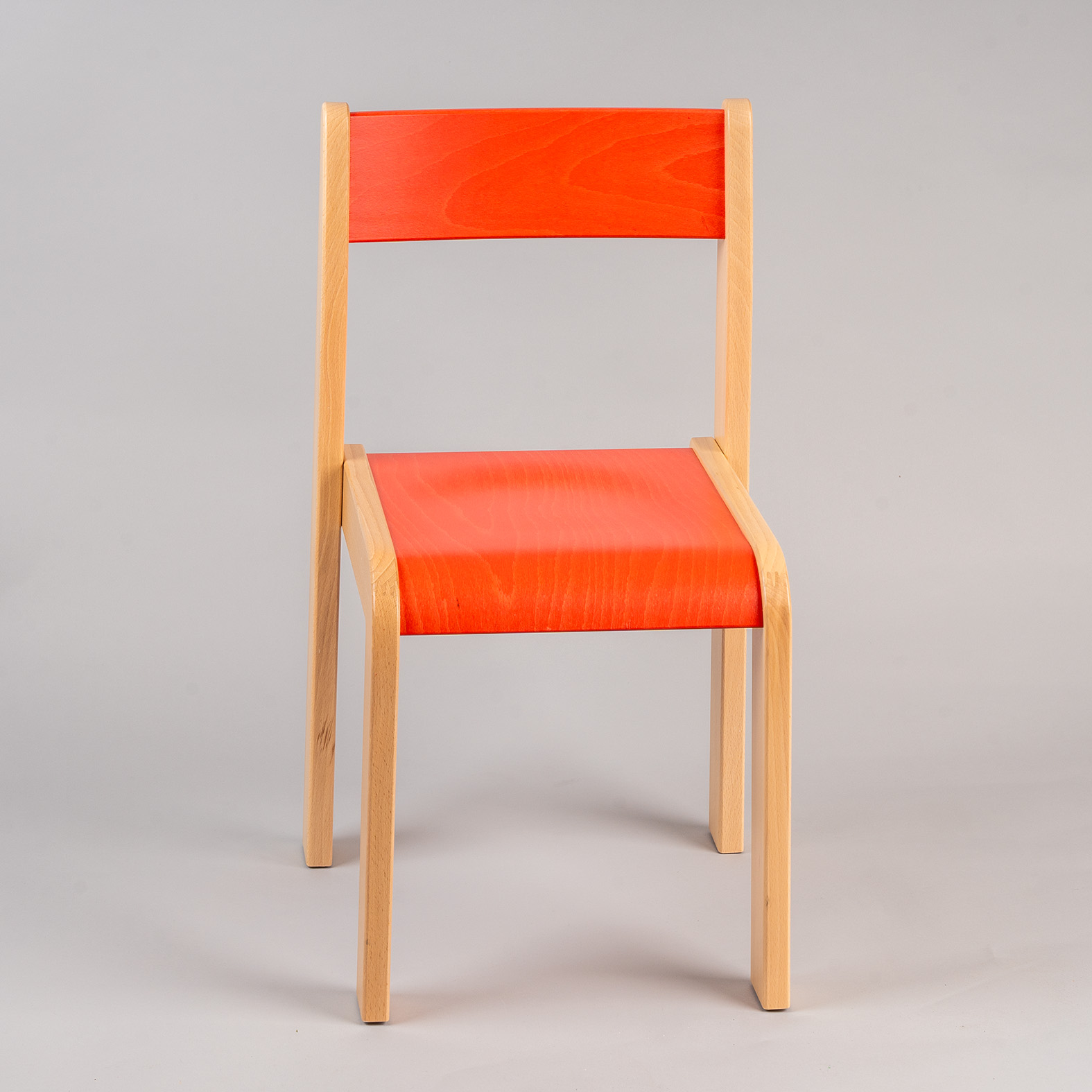 Mélyített ülése és íves háttámlája biztosítja a gyermekek helyes testtartását, egészséges fejlődését. Az ülés és háttámla rétegelt lemezből, a szék szerkezete bükkfából készül, vízbázisú, környezet- és gyermekbarát lakkal kezelve. A lábak alját műanyag csúszásgátlóval láttuk el.