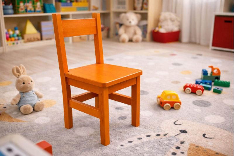 Tömör bükkfából készül, pácolt narancs felülete élénk színt visz a csoportszobai környezetbe.