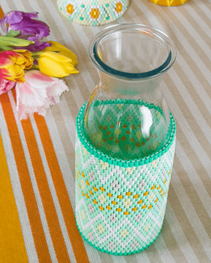 Kis tálkákat, üvegeket burkolhatunk a Hama vasalható gyöngyökkel, asztali díszítéseket készíthetünk