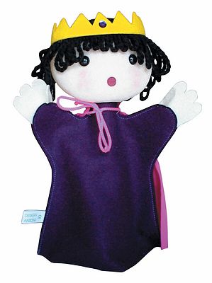 Magyarországon előállított, többnyire magyar alapanyagokból, kézi munkával készített, magas minőségű termék, mely kimondottan pedagógia módszertani szempontok alapján lett kialakítva. Felnőtt kézre méretezve, így kiválóan alkalmas az anyanyelvi vagy zenés foglalkozások színesítésére, kiegészítésére. A királyfi kesztyűbáb 25-30 cm nagyságú, három ujjas, puha textil anyagból előállított báb. Teste kék, palástja rózsaszín polár anyagból készült. Kis kezei fehér filc anyagúak. Arca rózsaszín plüss, rózsás pírral, ami még barátságosabbá teszi megjelenését. Haja fekete fonalból készült, fejét citromsárga filc korona díszíti. Szája kis méretű, szemei fekete gombszemek, arckifejezése kedves megjelenést kölcsönöz neki.