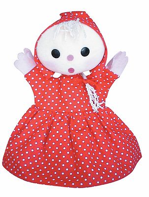Piroska kesztyűbáb felnőtt kézre Antoni Rozália iparművész által tervezett zsűrizett iparművészeti alkotás. Magyarországon előállított, többnyire magyar alapanyagokból, kézi munkával készített, magas minőségű termék, mely kimondottan pedagógia módszertani szempontok alapján lett kialakítva. Felnőtt kézre méretezve, így kiválóan alkalmas az anyanyelvi vagy zenés foglalkozások színesítésére, kiegészítésére. A Piroska kesztyűbáb 25-30 cm nagyságú, három ujjas, puha textil anyagból készült báb. Ruhája és kendője piros alapon aprómintás. Kezei, arca és haja fehér színűek. Frizuráját kis piros szalag díszíti. Szemei feketék, orra, szája és arcpírja rózsaszínesek. A báb jól tükrözi a mesebeli karakter jellegzetes vonásait. A manufakturális gyártásból adódóan előfordulhat, hogy a bábok más színű és mintájú anyagból készülnek el, mint ahogy az a képen látható!