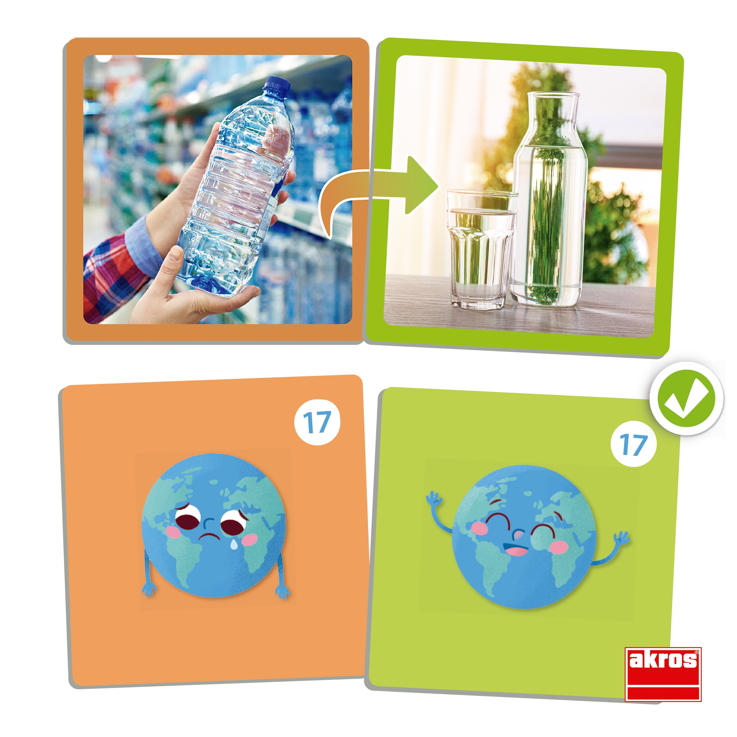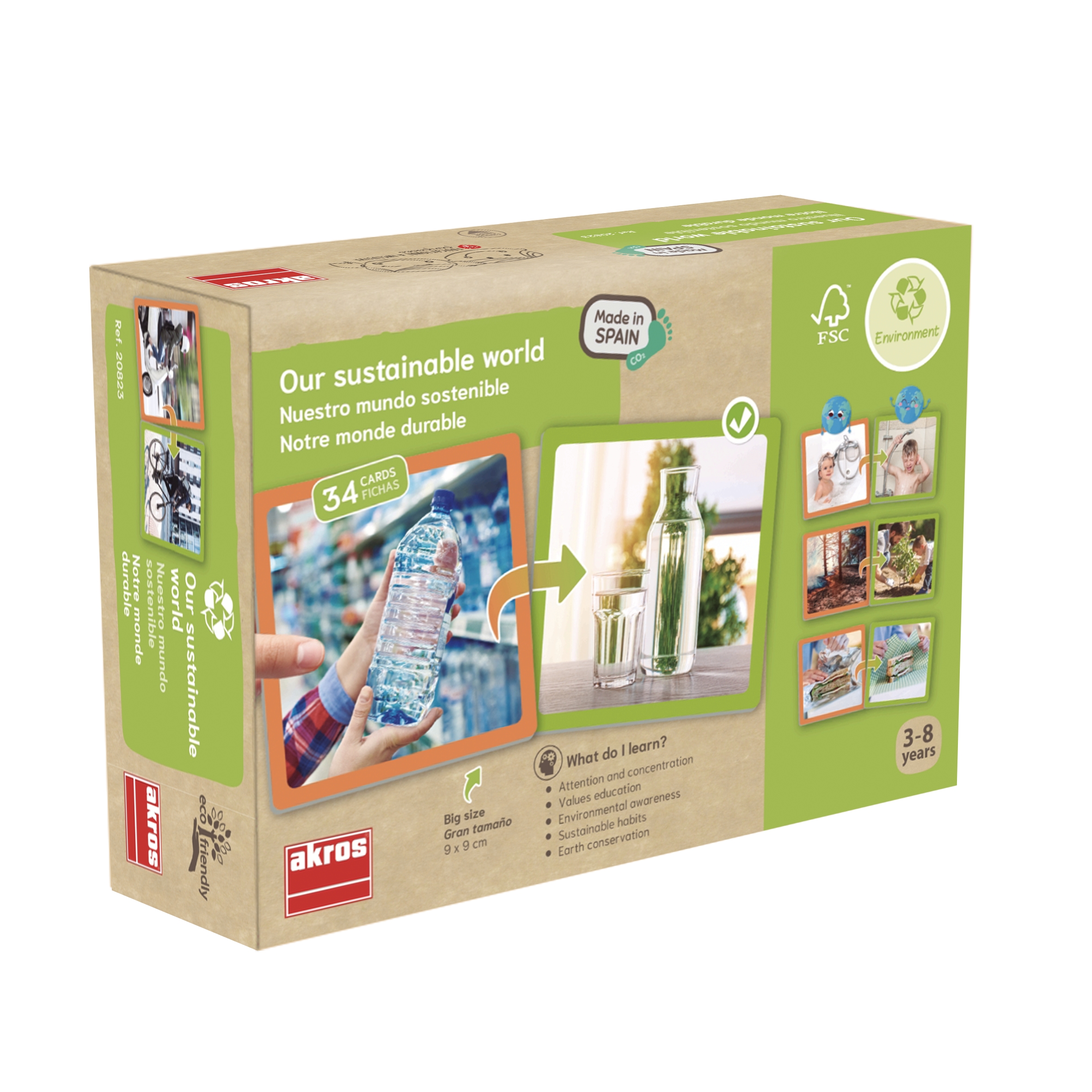Tartalma 34 db nagyméretű, valósághű kép hátoldali önértékelő rendszerrel, vastag, robusztus, nagyon strapabíró, kiváló minőségű kartonból. Ez a társasjáték arra ösztönöz minket, hogy apró változtatásokat vezessünk be mindennapi életünkben, ezzel felhívva a figyelmet arra, hogy cselekedeteinkkel egy fenntarthatóbb világot teremtsünk. Tanítani annyi, mint segíteni az embereknek jobbá tenni a világot! Kártya méretei: 9x9 cm.