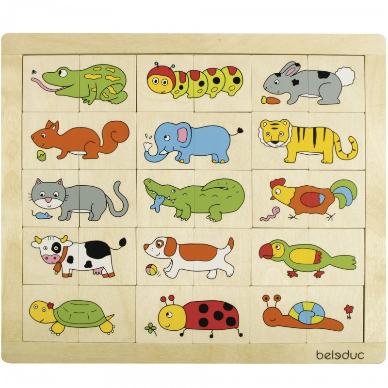 Az fából készült állatos puzzle egészen picike kortól kezdve fejleszti a gyerekek kézügyességét és logikáját. A játék során megtanulhatják az állatok neveit és jellegzetességeiket is.