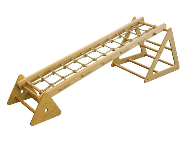 A RillaGym tömör bükkfából készült, strapabíró, többfunkciós mozgásfejlesztő készlet, amely különböző koordinációs képességek fejlesztésére alkalmas. Terhelhetőség: 60 kg Tartalma: - 1 db 47x35x31 cm-es billentő - 1 db 190x40x8 cm-es mászóháló - 1 db 60x74x66 cm-es háromszög