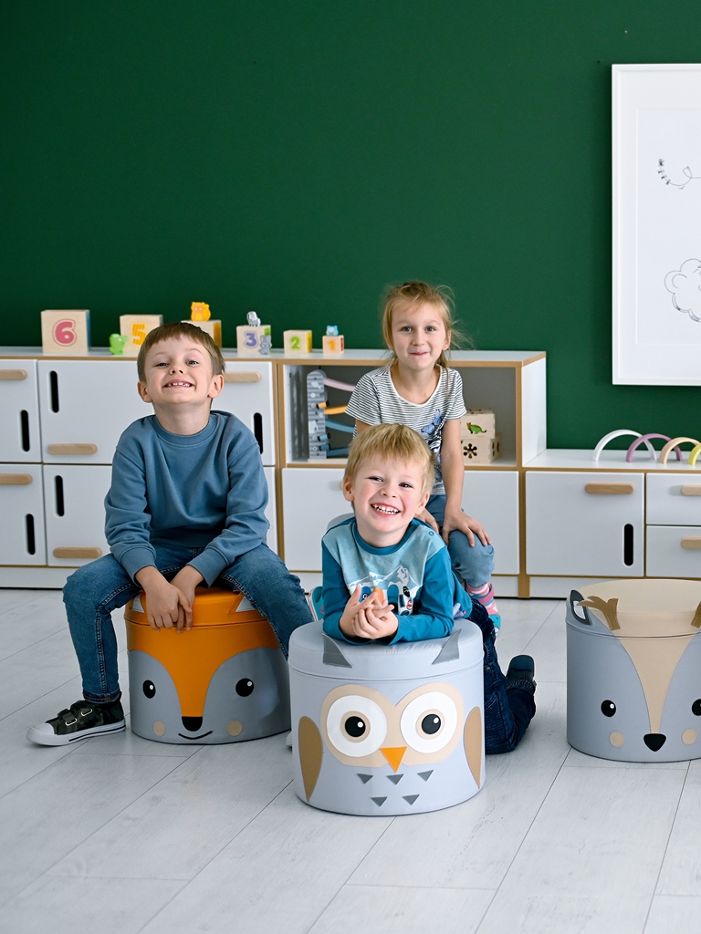 Aranyos állatos puff, amely a babaszoba hangulatos dísze lehet. Kedvelt termék bölcsődékbe, óvodákba vagy csoportos foglalkozásokhoz. A gyerekek könnyen tologathatják, vagy mozgathatják.